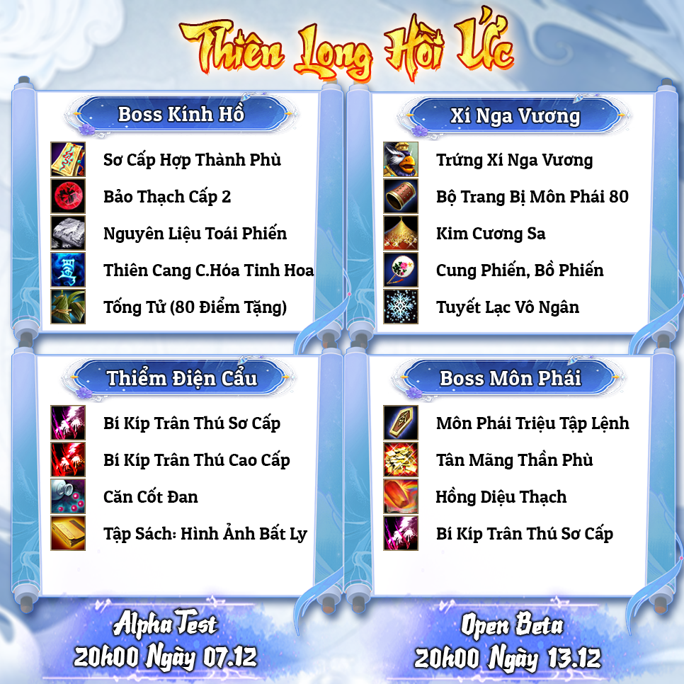 Máy chủ Cuồng Phong Bạo Vũ sắp ra mắt tới cộng đồng game thủ. Cùng Thiên Long Hồi Ức xem thông tin Drop Boss và Phụ Bản nào!